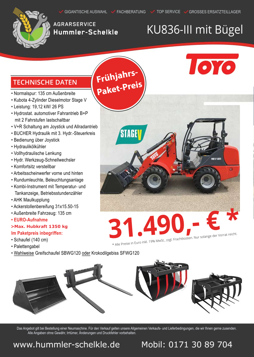 Neben Toyo Radlader verkaufen wir passende