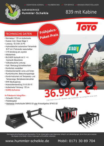 Sie können unsere Toyo Radlader bei uns in Möhringen gerne Probefahren. Außerdem können Sie unsere Radlader auch für kürzere oder längere Zeit Mieten.